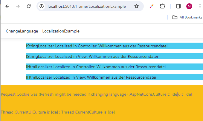 Since most apps will often provide a mechanism to set the culture with the ASP.NET Core culture cookie, we will focus only on that approach in our example.